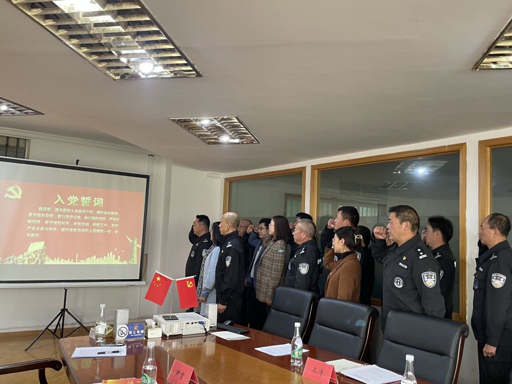 “鏈式”組織生活會由昆明市公安局特種警察支隊六大隊四中隊黨支部書記馬輝同志主持,集團黨總支副書記蔡冬燕同志、第二黨支部書記張月梅同志、宣傳委員汪振宇同志、組織委員尹雪同志以及第二黨支部下屬各黨小組組長出席會議。在蔡冬燕同志和馬輝同志的共同帶領下,全體黨員重溫入黨誓詞,在每一句誓言中重拾自己入黨的初心,蕩滌自己時代的使命。